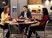 Ein Tässchen TeeKrisengipfel zu dritt: Judy Greer als Bridget Schmidt, Ashton Kutcher als Walden Schmidt, Sophie Winkleman als ZoeyBild: © SRF/Warner Bros.