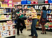 Ein Fischglas voller GlasaugenGemeinsamer Einkauf: Angus T. Jones als Jake Harper, Ashton Kutcher als Walden SchmidtBild: © SRF/Warner Bros.