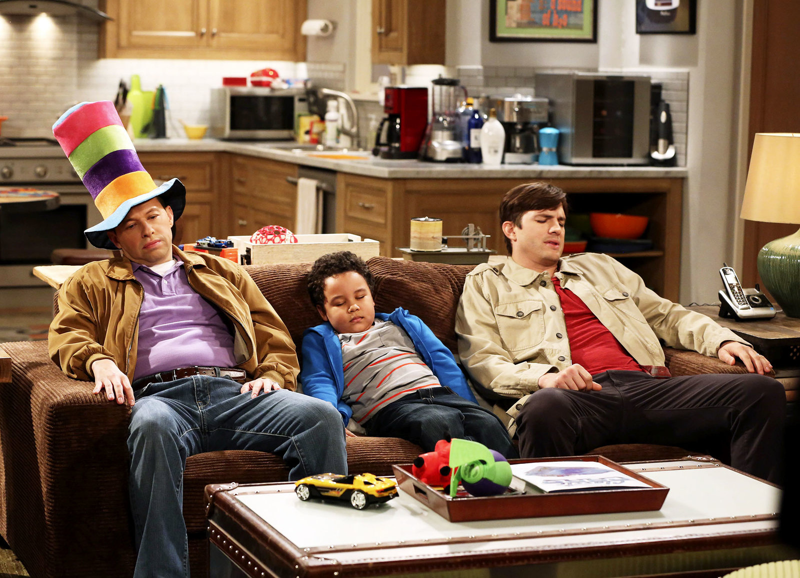 Alan hat ein Kind erschossenModerne Erziehungsmethoden: Ashton Kutcher als Walden Schmidt, Edan Alexander als Louis und Jon Cryer als Alan HarperBild: © Copyright SRF/Warner Bros.