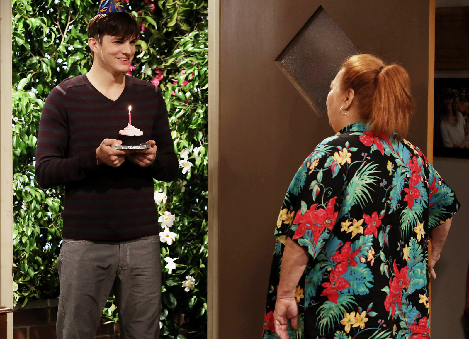 Die Paparazzi-FalleÜberraschung: Ashton Kutcher als Walden Schmidt, Conchata Ferrell als BertaBild: © SRF/Warner Bros.