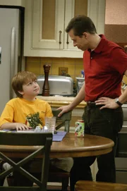 Ich muss früh rausSo gerissen wie Jake (Angus T. Jones, l.) ist, findet er immer eine neue Möglichkeit, Alans (Jon Cryer, r.) pädagogische Bemühungen zu unterlaufen ...Bild: © Warner Brothers Entertainment Inc. Lizenzbild frei