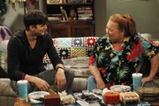 Alan CousteauWährend Chelsea (Jennifer Bini Taylor, l.) auf Charlie sauer ist, lässt sich Alan (Jon Cryer, r.) von seiner Mutter zu ihren Gunsten bestechen ...Bild: © Warner Bros. Television