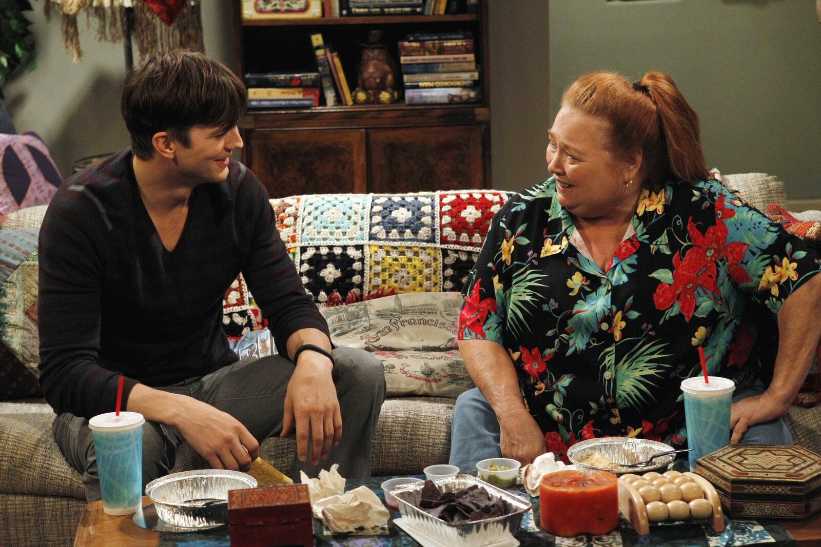 Fragen Sie einfach michBerta (Conchata Ferrell, r.) hat es auf Alans Zimmer abgesehen und erhofft sich, dass Charlie (Charlie Sheen, l.) sie als Haushälterin mit Wohnung in guter Lage und Meerblick bei sich aufnimmt ...Bild: © Puls 4