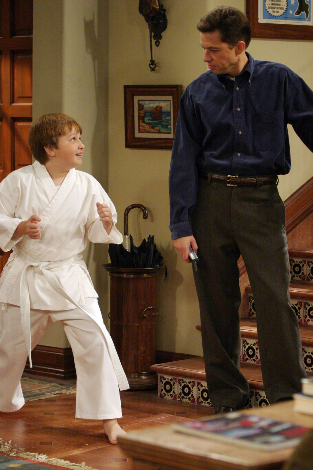 Vergiss den TechnikerNachdem Alan vom Dach gestürzt ist, verspricht Charlie (Charlie Sheen, l.) ihm, an seiner Stelle für Jake (Angus T. Jones, r.) zu sorgen, ohne zu wissen, dass der in einer Phase ist in der er seine Eltern mit seiner Eigenwilligkeit auf harte Geduldsproben stellt ...Bild: © Warner Brothers Entertainment Inc. Lizenzbild frei