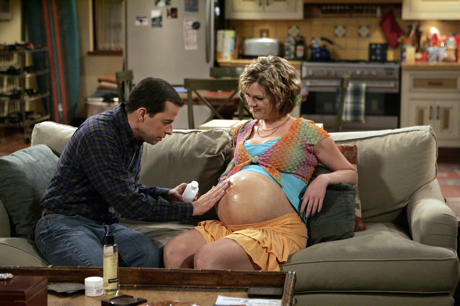 Wie Haare an feuchter SeifeSeitdem Alan (Jon Cryer, l.) mit seiner geschiedenen Frau Judith während deren Schwangerschaft den besten Sex seines Lebens hatte, fühlt er sich von der schwangeren Frauen (Sara Rue, r.) angezogen ...Bild: © Warner Brothers Entertainment Inc.
