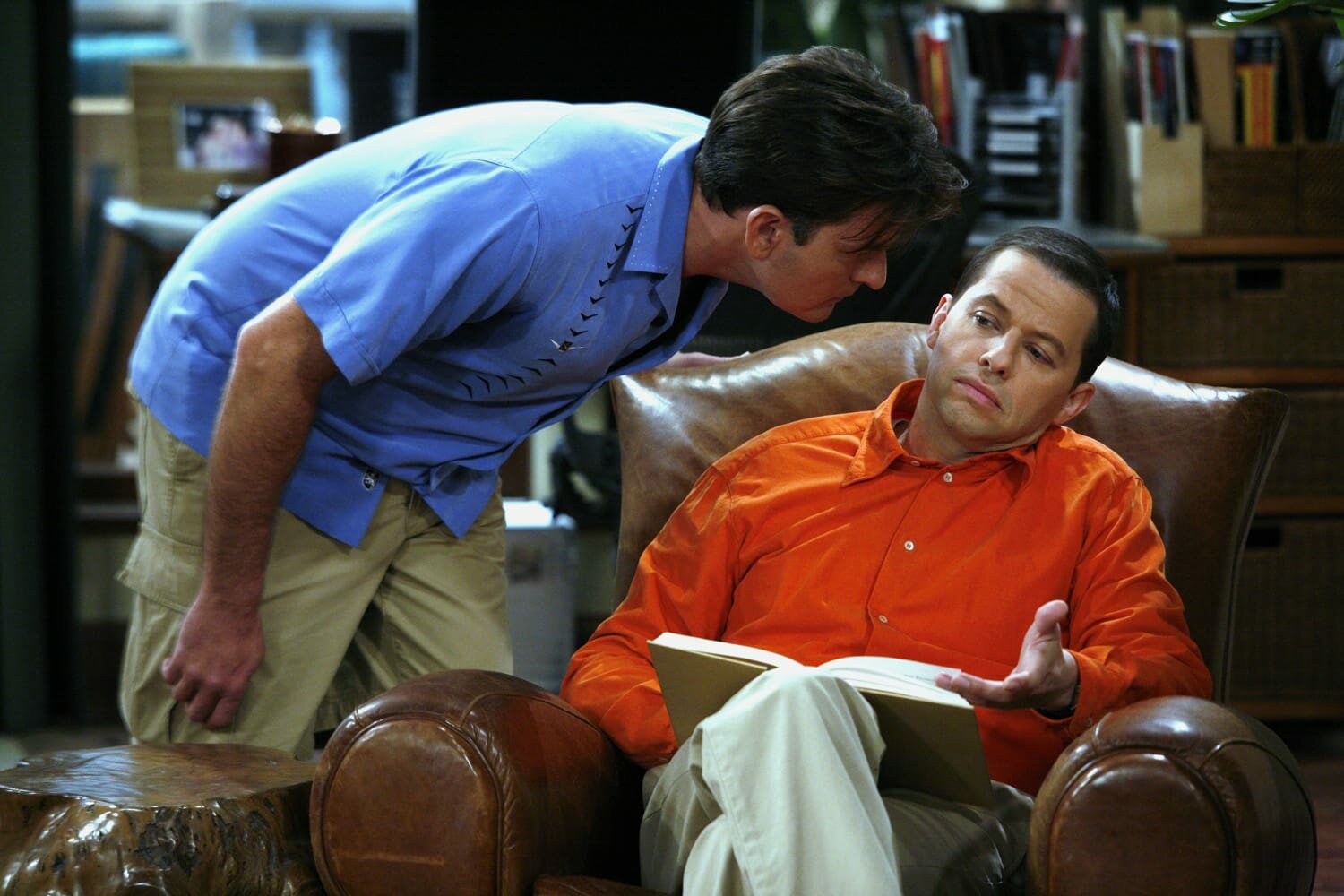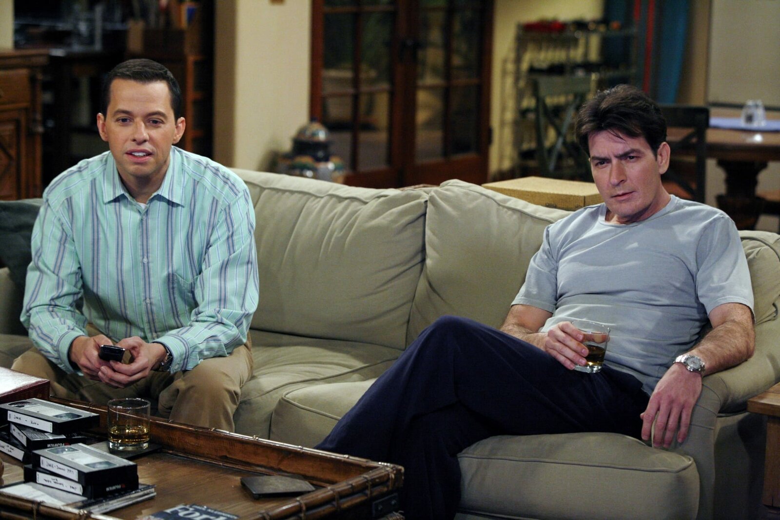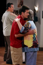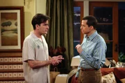 Ich hätte einen Affen nehmen sollenCharlie (Charlie Sheen, l.) leiht sich von Alan (Jon Cryer, r.) 38 Dollar, damit er nicht an den Geldautomaten muss. Er verspricht, ihm das Geld am Tag darauf zurückzugeben. Alan drängt am nächsten Morgen auf die Rückzahlung der Schulden, doch Charlie wird bockig. Es kommt zu einem heftigen Streit ...Bild: © Warner TV Comedy
