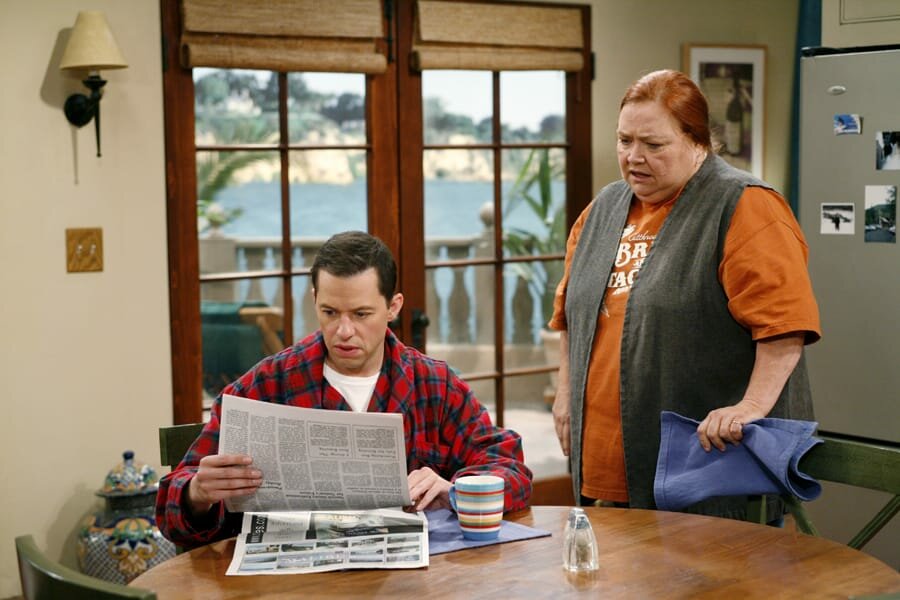 Nutten, Nutten, NuttenL-R: Alan Harper (Jon Cryer), Mrs. Wiggins (Amy Hill)Bild: © TNT Comedy (DE) / GREG GAYNE