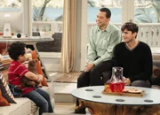 Willkommen in MalibuZwei Männer und ein halber: Edan Alexander als Louis, Jon Cryer als Alan Harper, Ashton Kutcher als Walden SchmidtBild: © Copyright SRF/Warner Bros.
