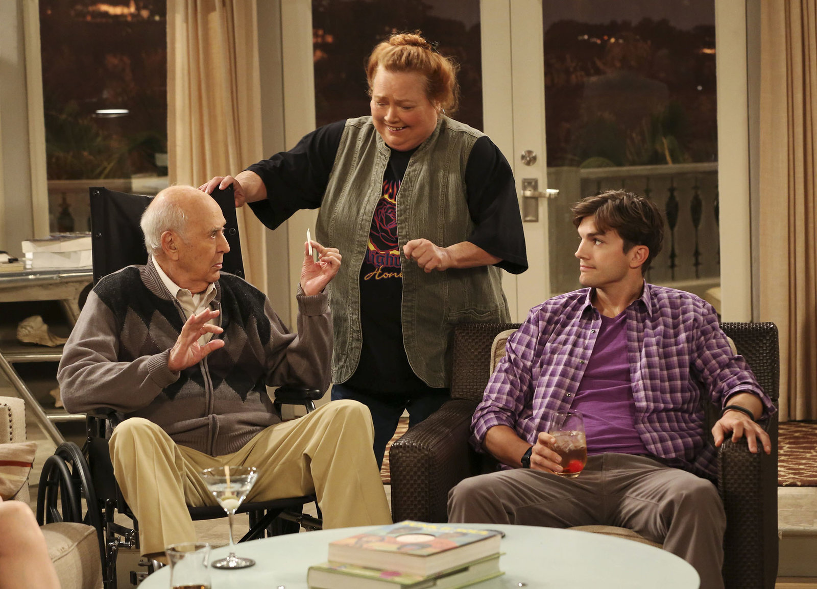 Pech mit der PerleEin verlockendes Angebot: Carl Reiner als Marty Pepper, Conchata Ferrell als Berta, Ashton Kutcher als Walden SchmidtBild: © Copyright SRF/Warner Bros.