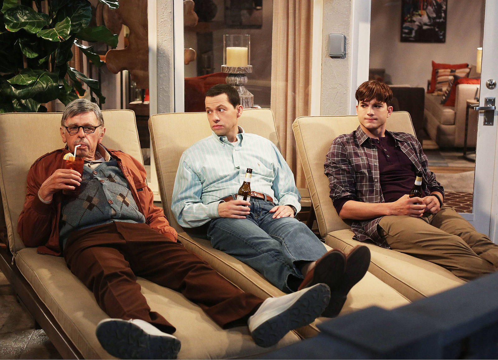 Wer ist Alan Harper?Eine Traumfamilie: Jon Cryer als Alan Harper, Ashton Kutcher als Walden Schmidt, Brooke D'Orsay als KateBild: © SRF/Warner Bros.