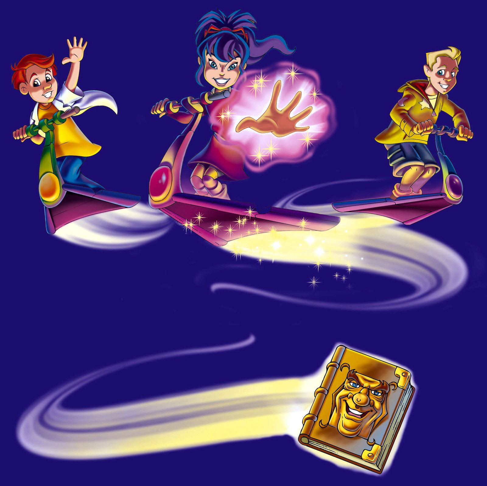 Im Reich des SchattendiebsMit UBOS - das unermessliche Buch der Orakel und Sprüche gehen die drei Kinder Verne, Cassy und Gus auf eine Reise zum Mittelpunkt der Erde. Dort lebt der böse Zaubermeister Zarlak, der alle Zauberkräfte der Erde für sich nutzen will. Doch nun treten die jungen Zauberlehrlinge unter UBOS's Leitung den Kampf gegen Zarlak und seine Helfer an.Bild: © KI.KA