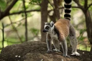 Im Reich der KattasEin Katta hat eine Madagaskarboa entdeckt. Vorsichtig beobachtet der Lemur mit dem geringelten Schwanz das Reptil aus der Distanz.Bild: © arte