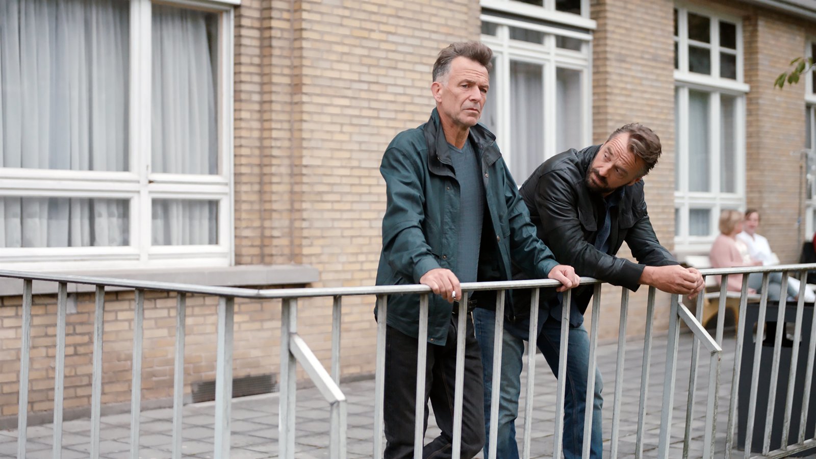 Folge 10Bob Lemmens (Tom Waes, l.) trifft sich mit Ferry Bouman (Frank Lammers), um die Details der Drogenübergabe zu besprechen. Wird Bouman endlich in die Falle tappen?Bild: © ZDF und Jo Voets.