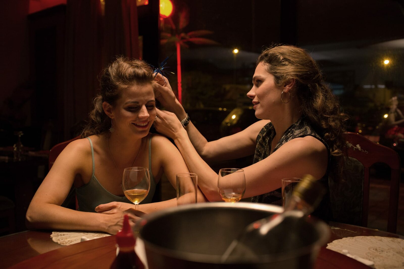 Folge 1Danielle Bouman (Elise Schaap) und Kim De Rooij (Anna Drijver) kommen sich während eines gemeinsamen Dinners näher.Bild: © RTS/Jo Voets