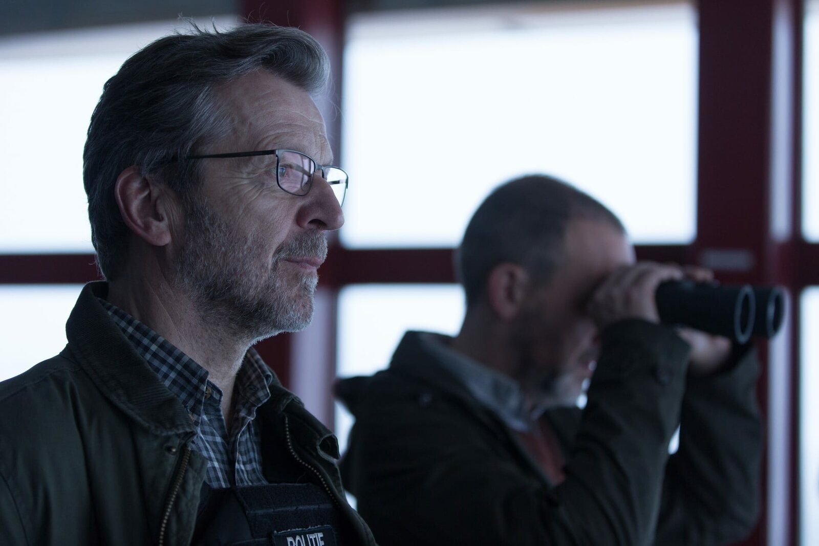 Folge 10Die Polizisten Ignace (Lucas Van den Eynde, l.) und Marc Gevers (Robbie Cleiren) beobachten den von langer Hand geplanten Drogendeal mit Ferry Bouman. Wird er ihnen endlich in die Falle tappen?Bild: © ZDF und Jo Voets.