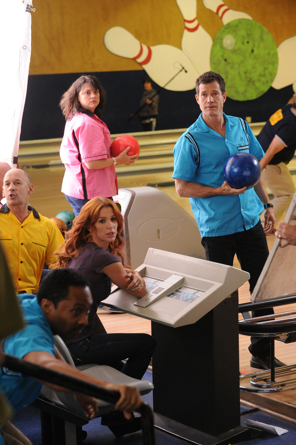 Interne ErmittlungAhnen noch nicht, dass ihr Bowling-Abend durch einen Mordfall gestört wird: Carrie (Poppy Montgomery, 3.v.l.) und Al (Dylan Walsh, r.) ...Bild: © 2011 CBS Broadcasting Inc. All Rights Reserved. Lizenzbild frei