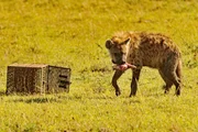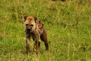 Eine kleine Hyäne auf Entdeckungsreise im Grasland - Sie wird fast vier Jahre lang von der Mutter abhängig bleiben.Bild: © ZDF und ORF/Cosmos Factory/Harald Pokieser