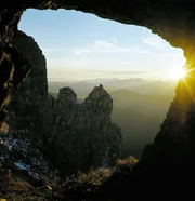 Es ist eines der Östlichsten, hochalpinen Ausläufer der Alpen - das gewaltige Bergmassiv des Hochschwab. 'Schwabenhochfläche' nennt man die fast sechshundert Quadratkilometer große Naturlandschaft mit ihren bizarren Felsformationen aus Wetterstein, den verzweigten Höhlensystemen und einsamen Hochalmen. Hier entspringen auch jene Quellen, die Graz und Wien mit hochqualitativem Wasser versorgen.Bild: © ZDF und ORF/Fritz Bayer