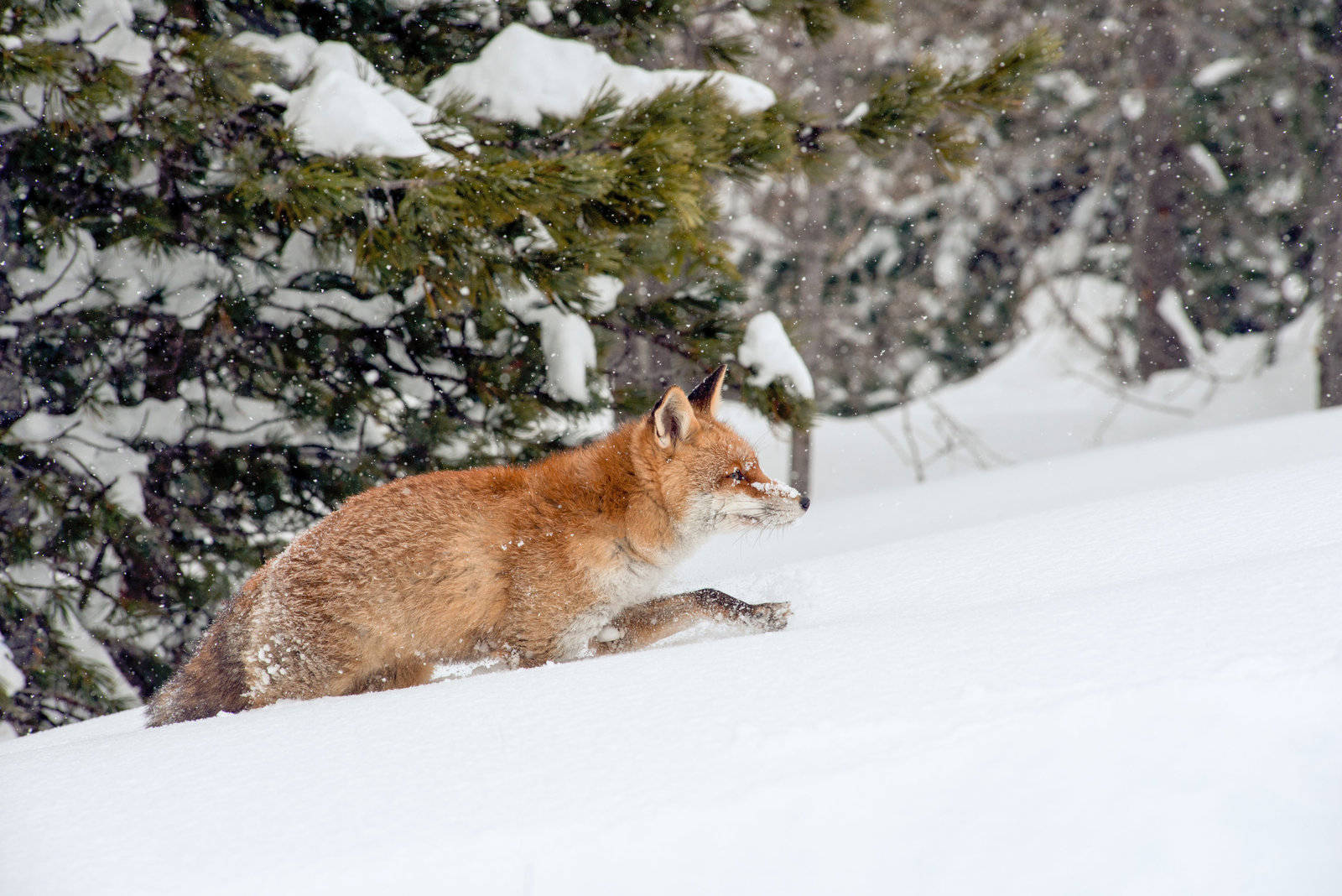 Dolomiten - Sagenhaftes Juwel der AlpenIm Winter ist der Fuchs von mehreren Gefahren bedroht. Nicht nur der Hunger macht ihn zu schaffen, er ist auch ideale und weit sichtbare Beute für den Beutegreifer aus der Luft: Dem Adler.Bild: © ZDF und ORF/Kurt Mayer Film