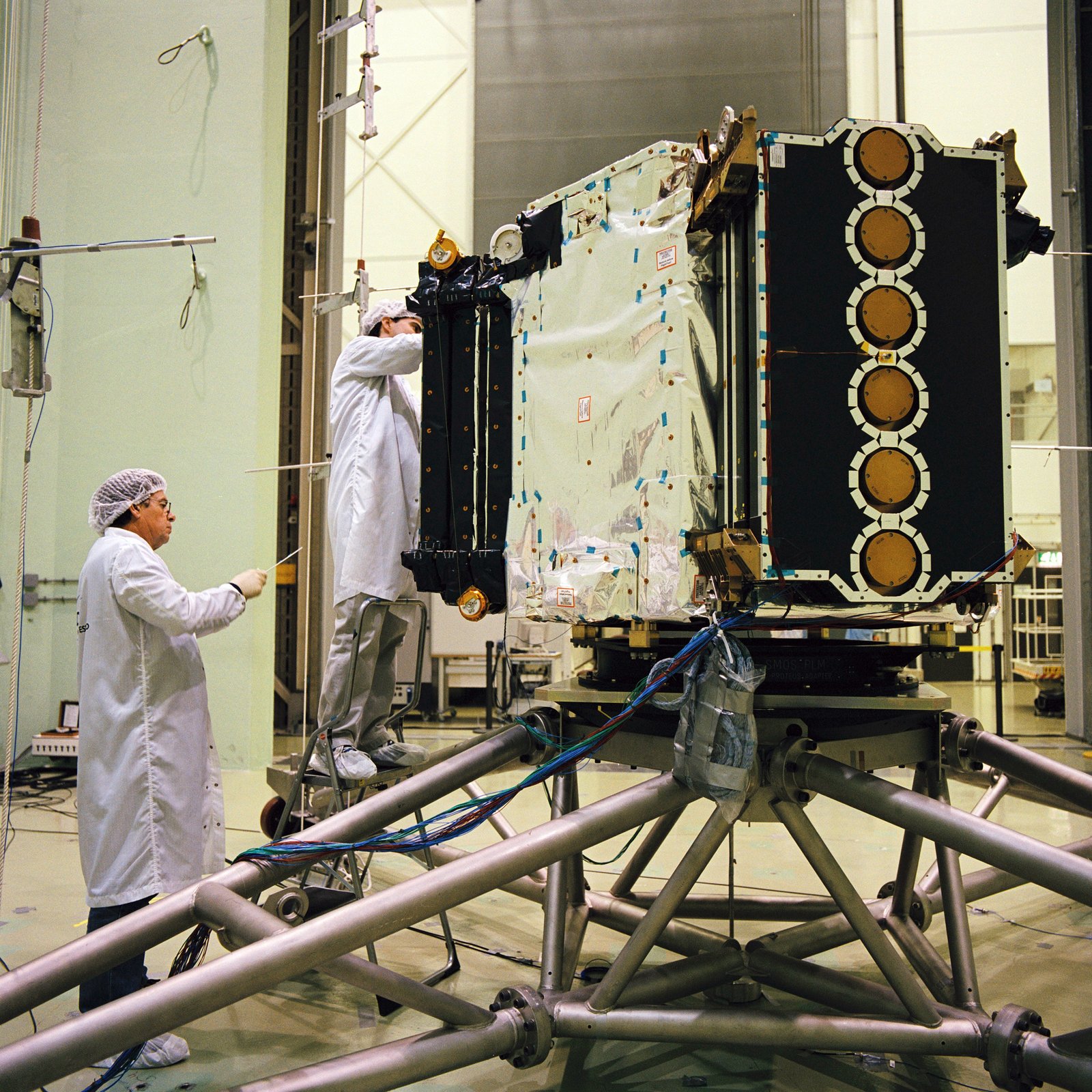 Der große HorizontSatellit SMOS wird für den Transport ins Weltall vorbereitet.Bild: © ZDF und ORF/ESA.