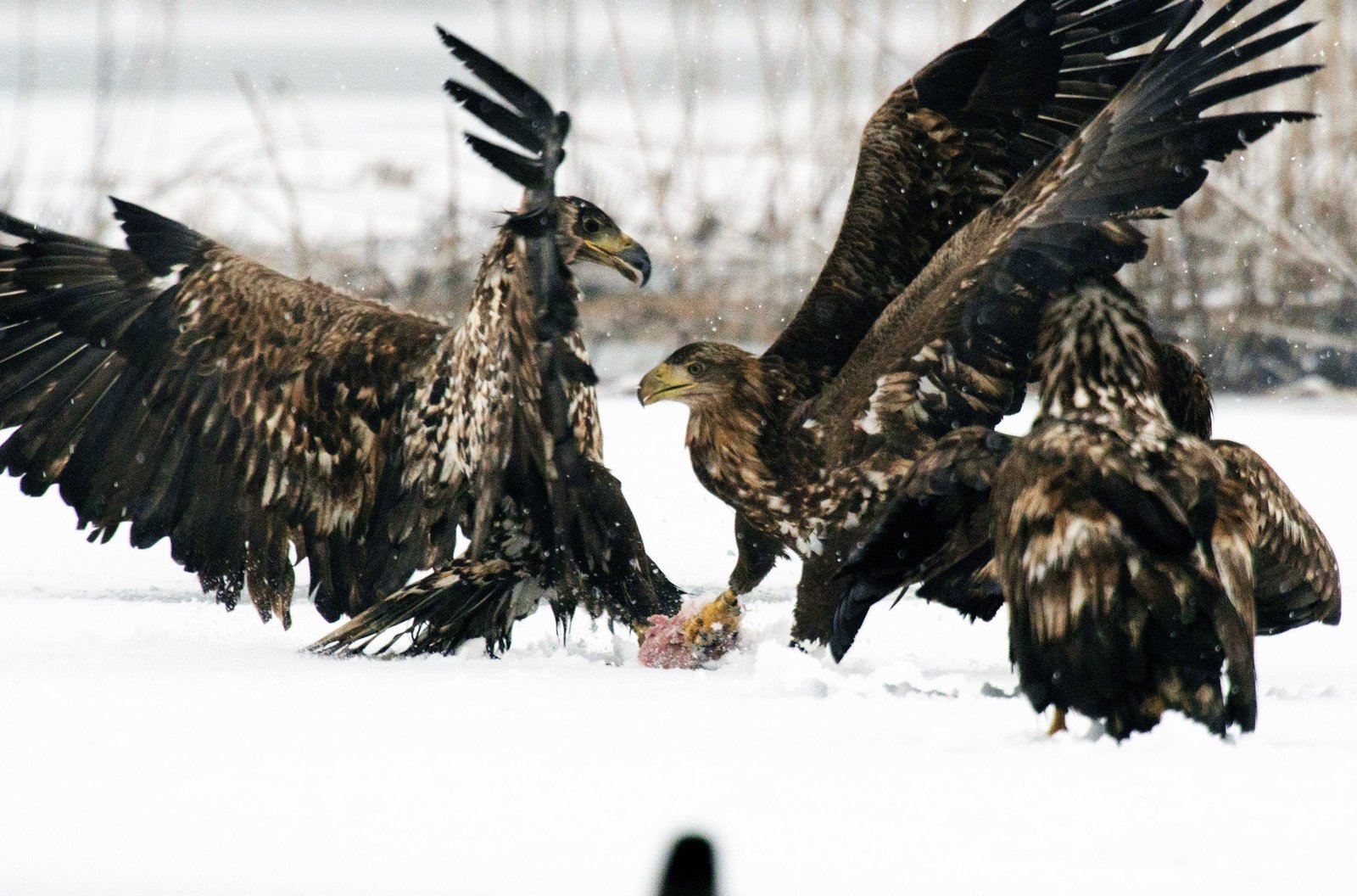 Das Oder-Delta - Grenzenlose Wildnis an der OstseeDer Winter bietet Seeadlern zwar reichlich Nahrung, die Greifvögel kämpfen aber trotzdem um jeden Happen.Bild: © ORF 2