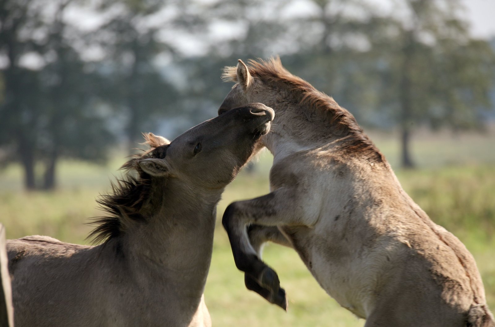 Das Oder-Delta - Grenzenlose Wildnis an der OstseeIm Frühjahr rangeln die Konik-Hengste miteinander. Auf der polnischen Seite des Oder-Deltas zieht eine Herde von mehr als 200 Tieren über eine riesige Freifläche.Bild: © ORF 2