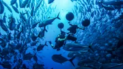 Unser Blauer Planet (2): Wiege des LebensDer Wissenschaftler Steve Simpson verwendet ein multidirektionales Hydrophon, um die Geräusche eines Korallenriffs aufzunehmen. Wissenschaftler haben kürzlich herausgefunden, dass viele Fische auf dem Riff in wichtigen Phasen ihres Lebens auf Schall angewiesen sind - und dass von Menschen verursachter Lärm dies stört.Bild: © ORF2