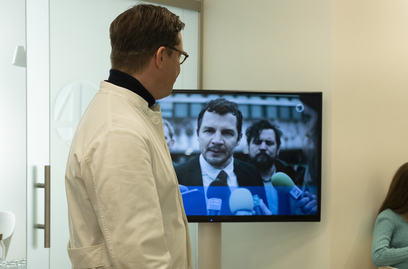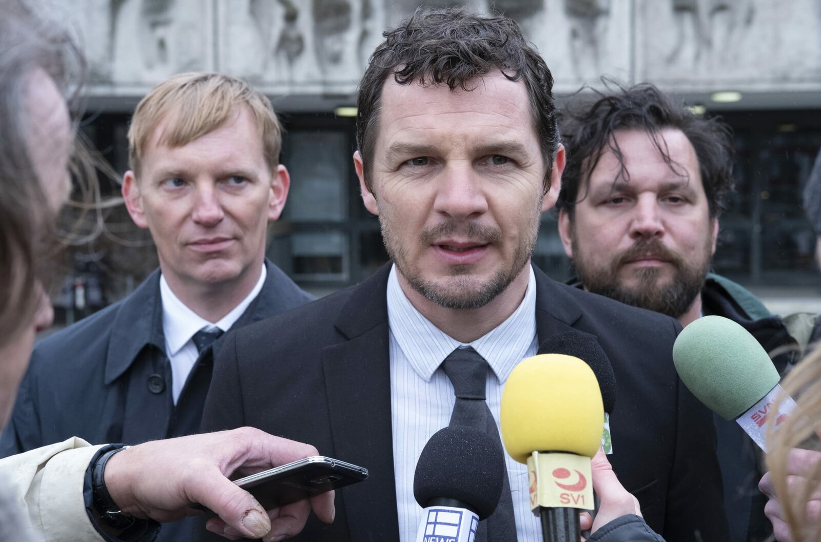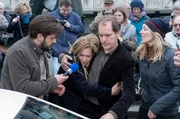 Teil 1Großes Medieninteresse an dem spektakulären Freispruch für Alex: Journalisten (Christoph Jöde und Kristina Pauls) bedrängen Marion Mosbach (Anna Loos) und ihren Mann Uwe (Godehard Giese). - Foto aus Teil 1 -Bild: © ARD Degeto/Christine Schröder
