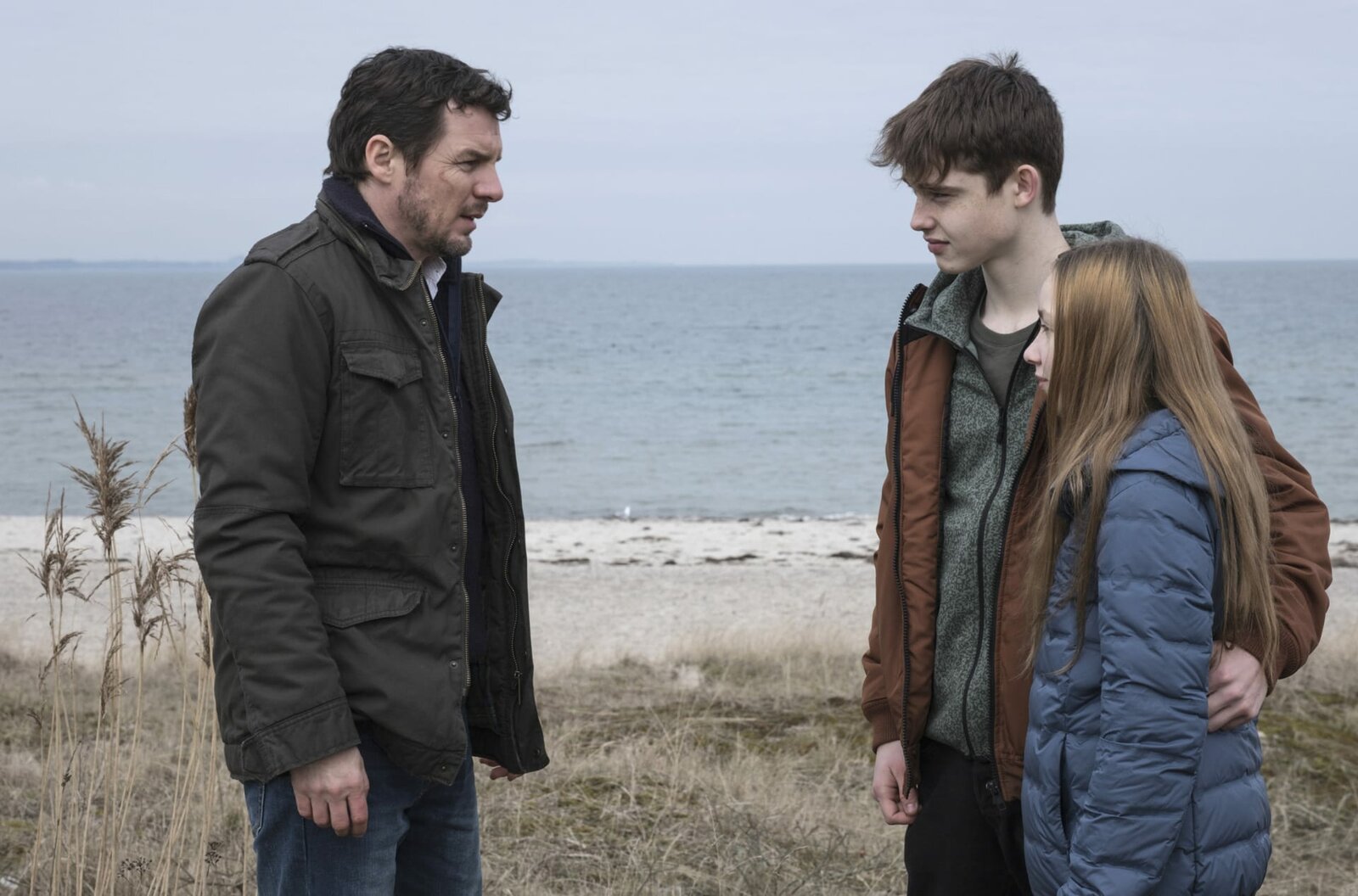 Teil 2Alex Schwarz (Felix Klare, li.) möchte seine Kinder Lasse (Yuri Völsch) und Lena (Ruby M. Lichtenberg) zurückhaben und sucht den Kontakt zu ihnen. - Foto aus Teil 2 -Bild: © WDR/Degeto/Christine Schröder / WDR Kommunikation/Redaktion Bild