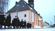 Ohne sie geht kein Gottesdienst los: die kleinen Kurrende-Sänger auf dem Weg zum „Dienst" .
