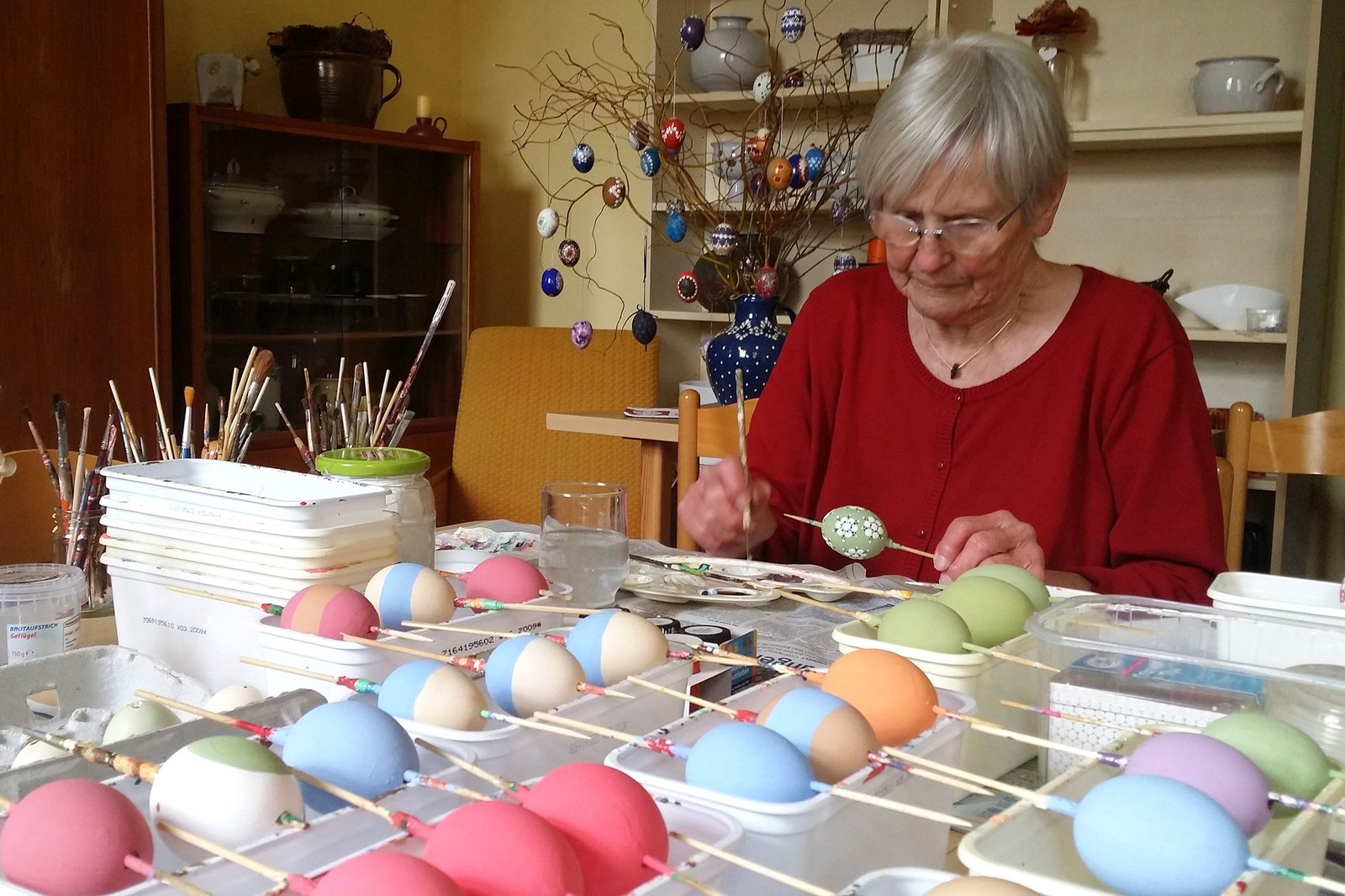 Lydia Meinhardt fängt schon Anfang des Jahres mit dem Ostereier bemalen an, denn sie beliefert das ganze Dorf.