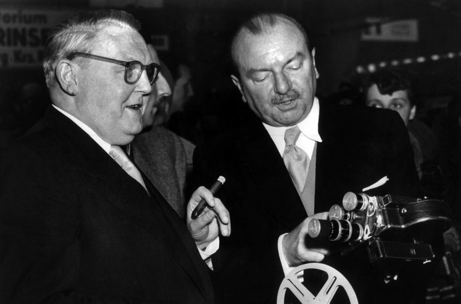 Aufbruch ins WirtschaftswunderlandDie erste Photokina: Bundeswirtschafsminister Dr. Ludwig Erhard (l, CDU) und Agfa-Chef Dr. Bruno Uhl beim Rundgang auf der ersten photokina 1951 in Köln. 250 deutsche und 70 ausländische Aussteller präsentierten ihre technischen Entwicklungen.Bild: © WDR/INTERFOTO