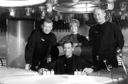 Weg mit dem Grauschleier - 1965-1967Szenenfoto "Raumpatrouille Orion" mit (v.l.) Leutnant Mario de Monti (Wolfgang Völz), Major Cliff Allister McLane (Dietmar Schoenherr), Leutnant Tamara Jagellovsk (Eva Pflug) und Leutnant Hasso Sigbjoernson (Claus Holm) in ihrem Raumschiff (Archivfoto, 1965)Bild: © WDR/dpa