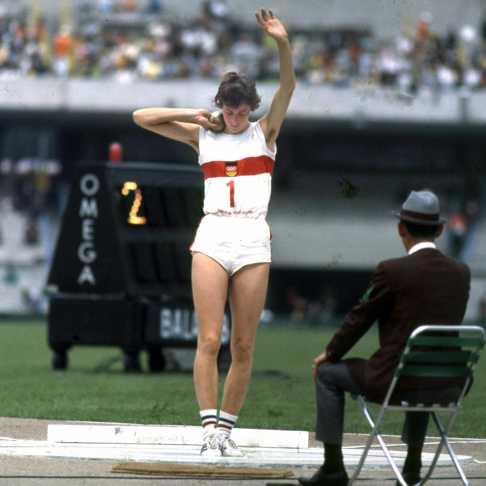 Ingrid Mickler Becker, ehemalige Leichtathletin, holte 1968 bei den Olympischen Spielen im Fünfkampf das erste Gold für Deutschland holte. (Archivfoto: Olympische Sommerspiele 1968 in Mexiko-City. Fünfkampf Frauen. Ingrid Mickler-Becker (BRD) beim Kugelstoßen)Bild: © WDR/imago/Horst Müller