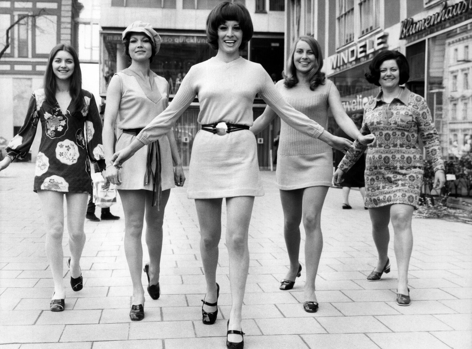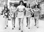 Eine Klasse für sich - 1962-1964Anfang der 60er stand der Mini-Rock bei modebewussten Frauen hoch im Kurs. (Archivfoto, In Miniröcken präsentieren junge Damen ür den Strumpfhersteller Bellinda maßgeschneiderte Strumpfhosen (undatiertes Handout)).Bild: © WDR/dpa