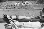Von Beatles, Bikinis, und Babyboomern - Unser Land in den 60ernBikini-Mode in den 60ern: Im Grugabad in Essen baden zwei Frauen in ihrem Bikini in der Sonne.Bild: © WDR/dpa/Horst Ossinger / WDR Kommunikation/Redaktion Bild