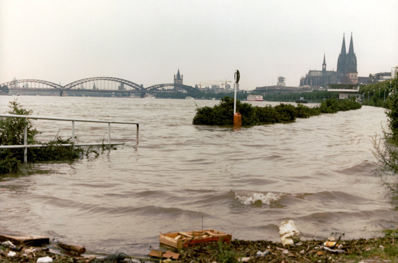 WDR Fernsehen KEINE ATEMPAUSE - GESCHICHTE WIRD GEMACHT - 1980, "Aus der Reihe "Unser Land in den 80ern"", am Freitag (10.08.18) um 20:15 Uhr. 1980 stieg das Hochwasser des Rheins in Köln auf über 9 Meter. Die Uferwege sind überschwemmt - im Hintergrund der Kölner Dom. © WDR, honorarfrei - Verwendung gemäß der AGB im engen inhaltlichen, redaktionellen Zusammenhang mit genannter WDR-Sendung bei Nennung "Bild: WDR" (S1+). WDR Presse und Information/Redaktion Bild, Köln, Tel: 0221/220 -7132 oder -7133, Fax: -777132, bildredaktion@wdr.de