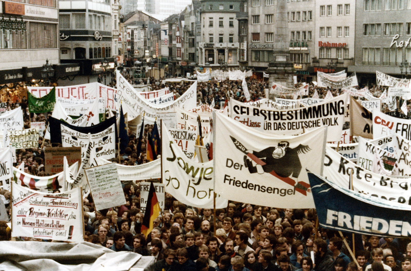 1981: Zum ersten Mal pöbelte sich Horst Schimanski in seiner speckigen Jacke durch den „Tatort“. In Bonn kamen Hunderttausende zur ersten Friedensdemo im Hofgarten und die Händler auf dem Marktplatz gaben Demonstrationsrabatt – um vor dem erwarteten Krawall schnell noch alle Waren zu verkaufen. Und die Fußballfrauen von der kleinen SSG 09 aus Bergisch Gladbach wurden Weltmeister – obwohl es diesen Titel im Frauenfußball damals noch gar nicht gab, ebenso wenig wie eine weibliche Nationalmannschaft. Der zweite Film der neuen zehnteiligen WDR-Dokumentationsreihe „Unser Land in den 80ern“ erzählt von einer Zeit, als die SPD mit absoluter Mehrheit das Land regierte; es war das Jahr, in dem die Arbeitslosenquote auf fast 400.000 stieg – so viel wie nie zuvor. Überall musste gespart werden, denn es fehlte im wahrsten Sinne des Wortes „Jede Menge Kohle“. - Hunderttausende kamen am 22. November 1981 zur Friedensdemo gegen die Politik von Leonid Breschnew nach Bonn.