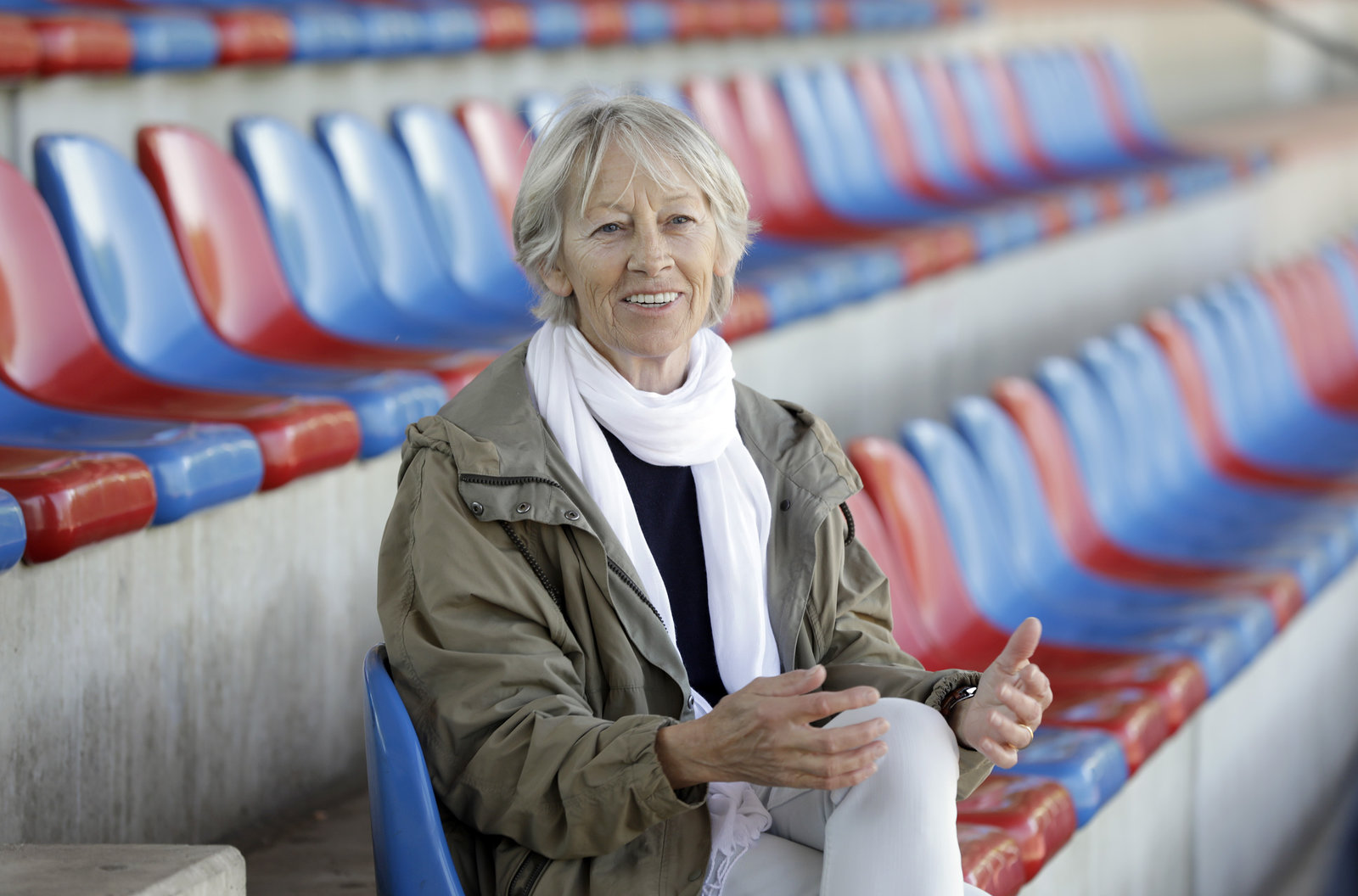 Anne Trabant-Haarbach (geb. 1. Januar 1949 als Anne Haarbach), ehemalige deutsche Fußballspielerin und -trainerin, in der BELKAW-Arena, Bergisch Gladbach.