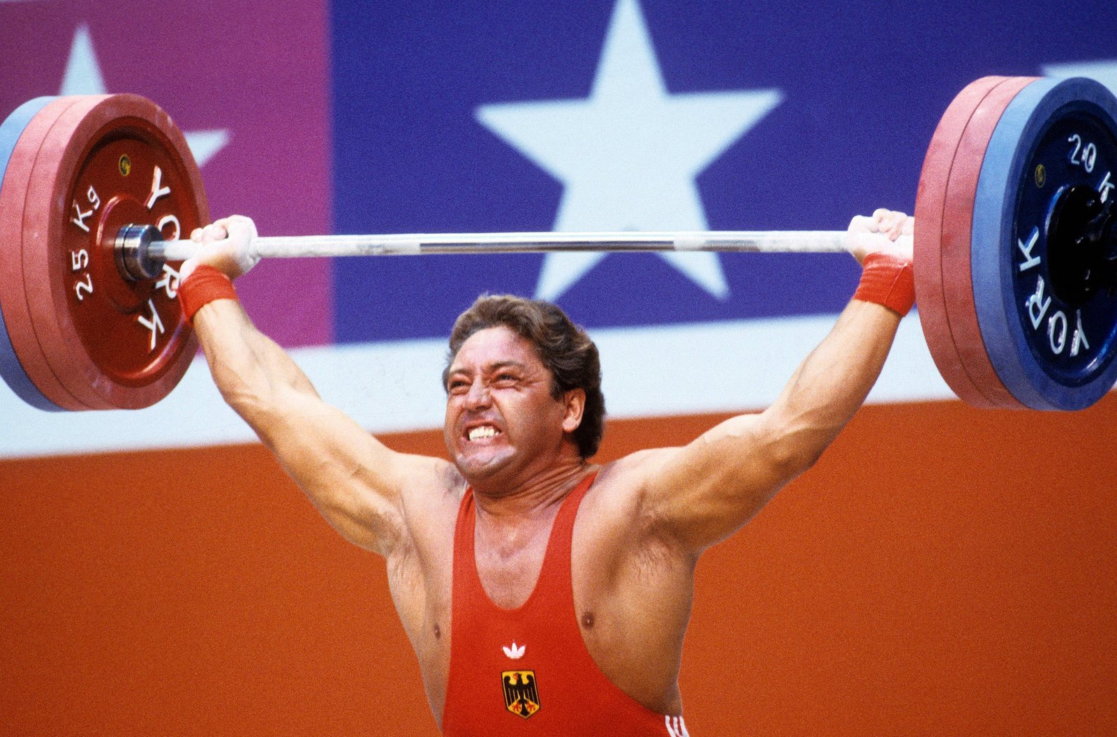 Gewichtheber Rolf Milser gewinnt 1984 bei den Olympischen Spielen in Los Angeles die Goldmedaille. (Archivfoto, 06.08.1984)