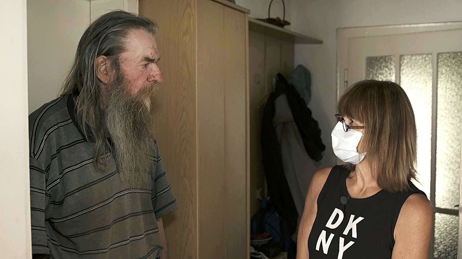 Du riechst nach Berlin - Von Menschen, die Obdachlose aufnehmen„Ein freundlicher Blick, vielleicht eine Münze für den Kaffeebecher — viel mehr können Obdachlose von Passanten oft nicht erwarten.“ Das sagt der Straßenkünstler Tex Brasket, der selbst seit Jahren kein Zuhause hat. Zu groß scheint die Kluft zwischen dem Dasein auf der Straße und einem bürgerlichen Leben. Was aber passiert, wenn Menschen diese Kluft zu überwinden versuchen?Bild: © ZDF und rbb/polyeides medienkontor.