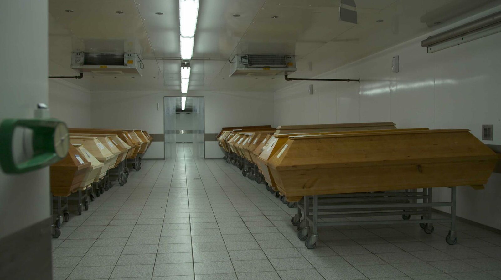 Abschied vom Leben - Was am Ende wichtig istKühlkammer mit Särgen im Krematorium „Flamarium Saalkreis“ in KabelsketalBild: © rbb/Erik Schimschar/Götz Walter