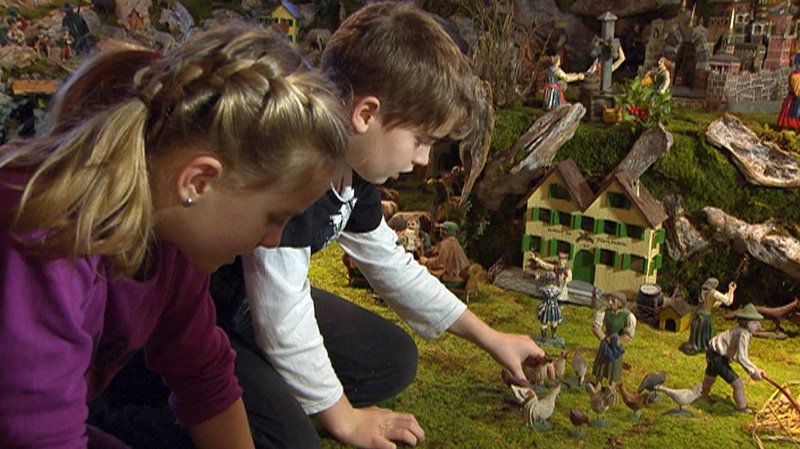 Drei Generationen helfen beim Krippenaufbau mit, hier die Jüngsten.Bild: © BR
