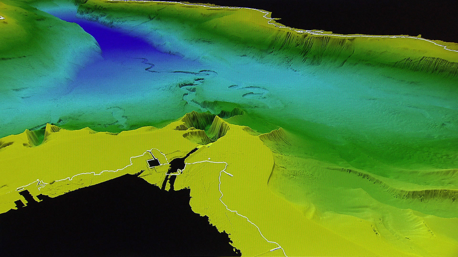 Bodenseegrund: diese Furche hat der alte Rhein in den Grund des Bodensees gegraben.Bild: © ZDF und ORF