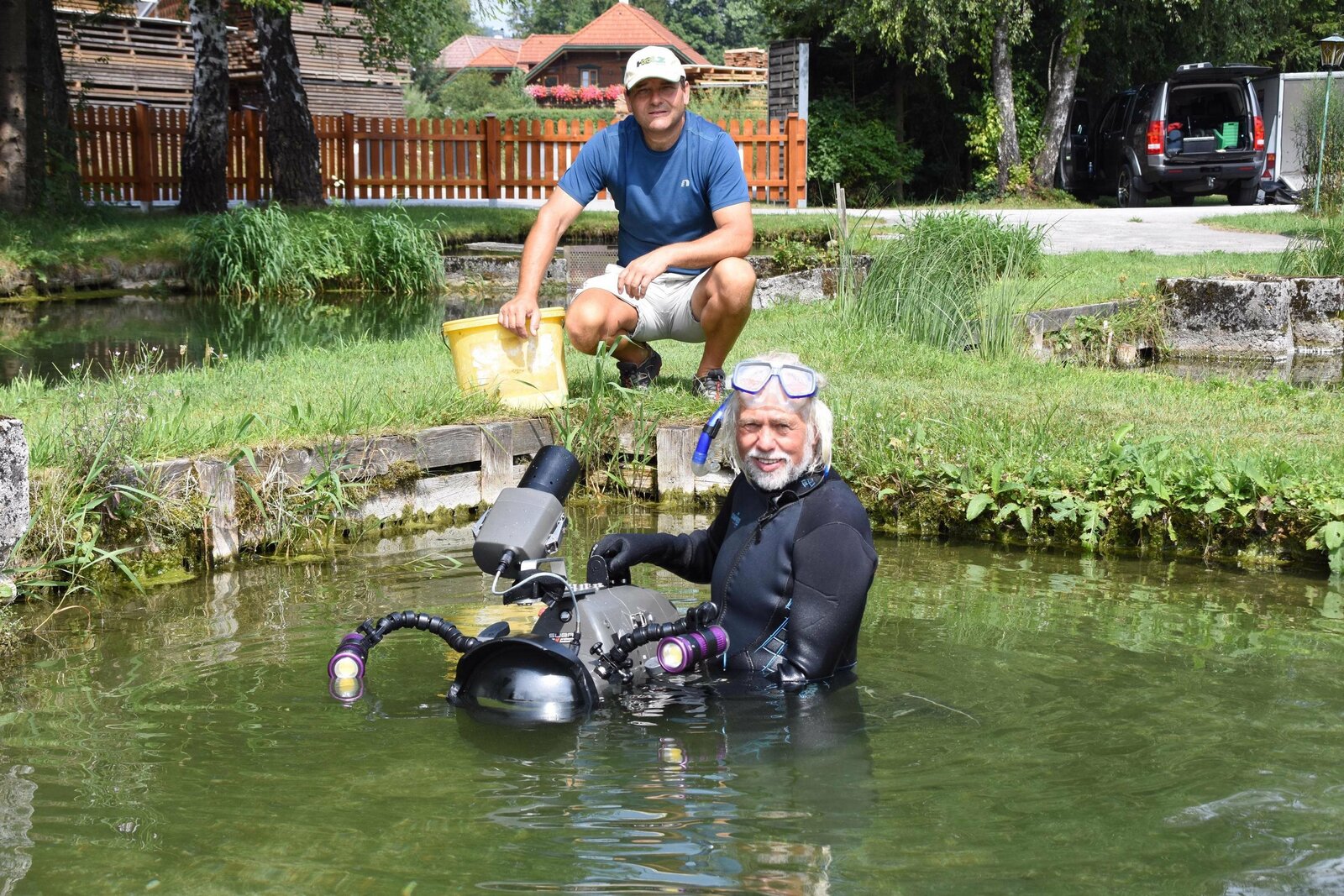 Naturfilmer Erich Pröll mit der Unterwasserkamera beim Fischteich des Forellenhofs in Grünau.Bild: © ORF/ORF-OÖ