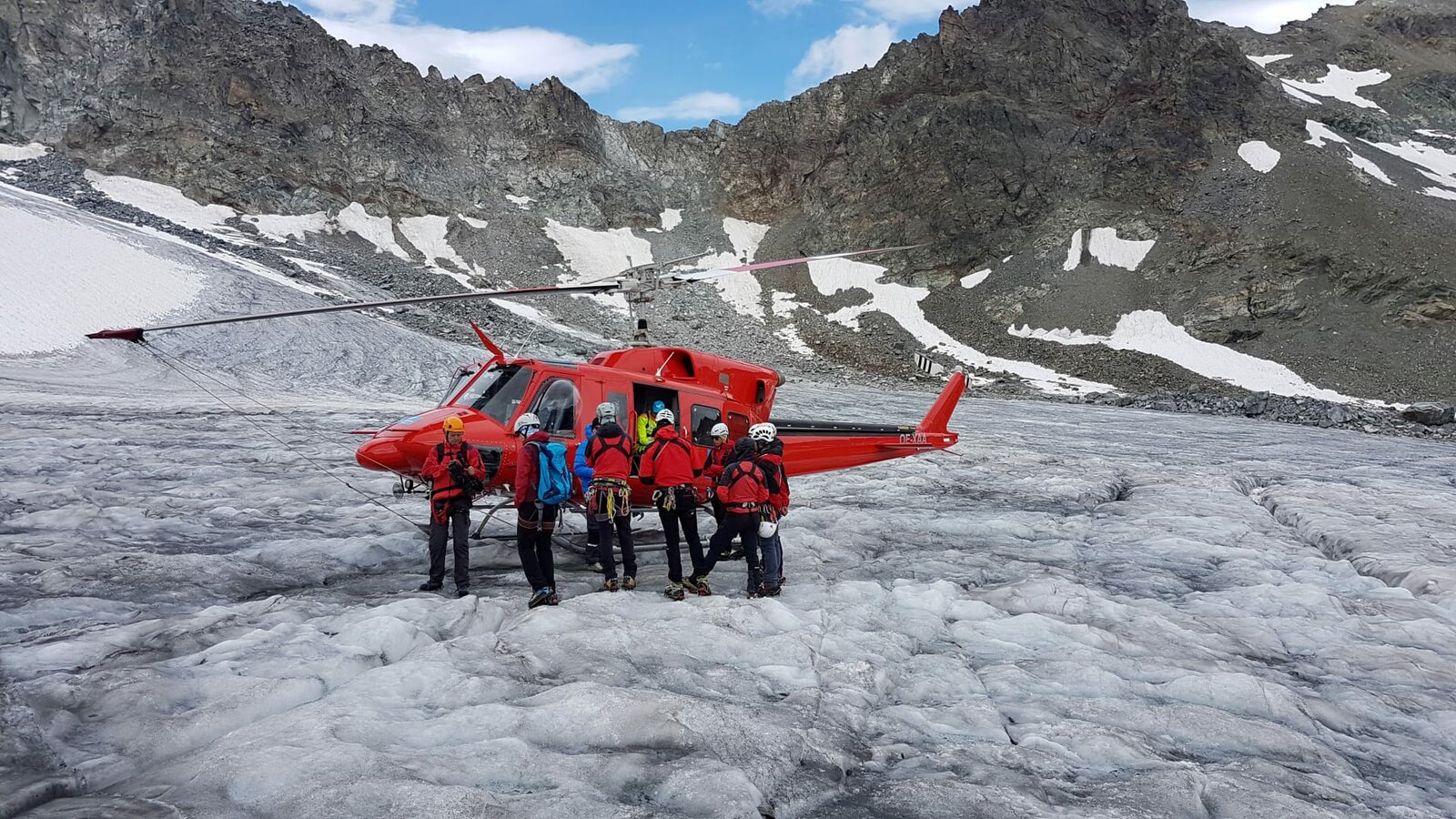 Dreh mit Bergrettung am Jamtalgletscher.Bild: © ORF/ORF III/Toni Silberberger
