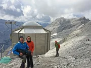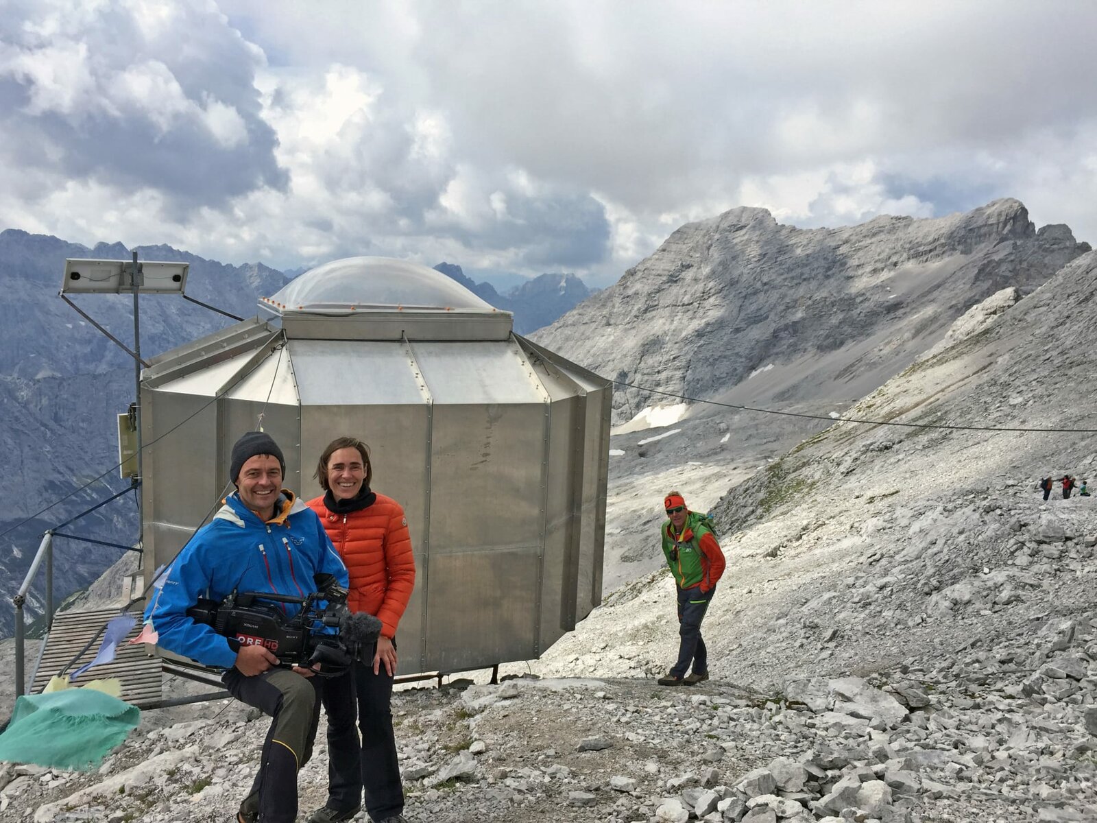 Das ORF Team Mike Mayer (Kamera) , Teresa Andreae (Redaktion) beim Biwak im Karwendel.Bild: © ORF/ORF Tirol