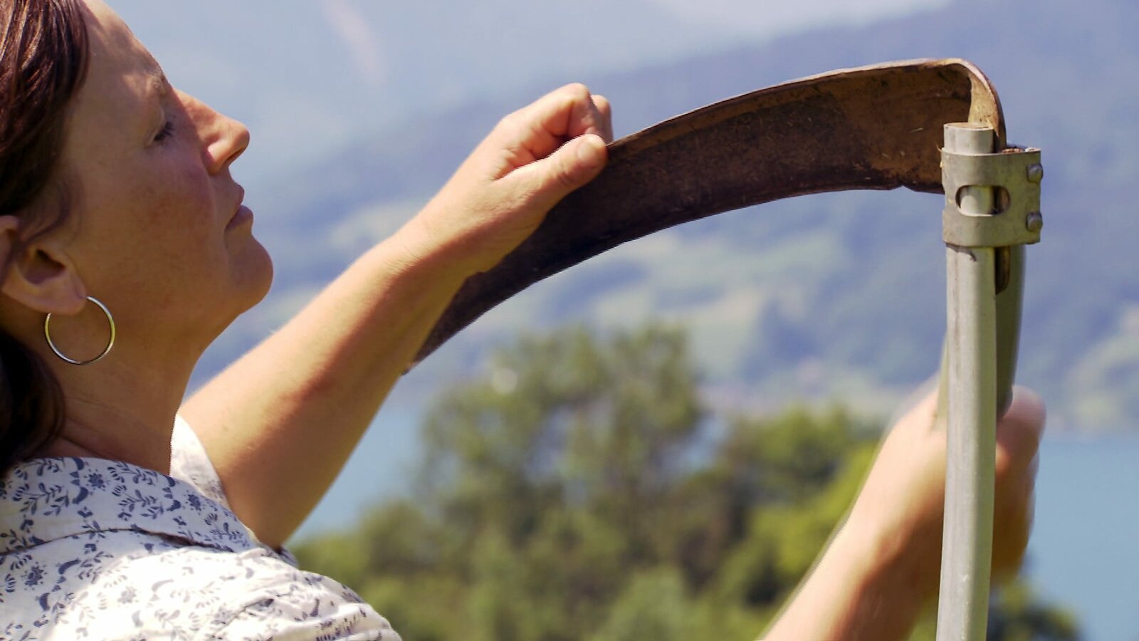 Bauerntochter und Bäuerin Christine Pichler-Brix bei der Landschaftspflege in Steinbach am Attersee.Bild: © ORF/Pre TV/Robert Neumüller