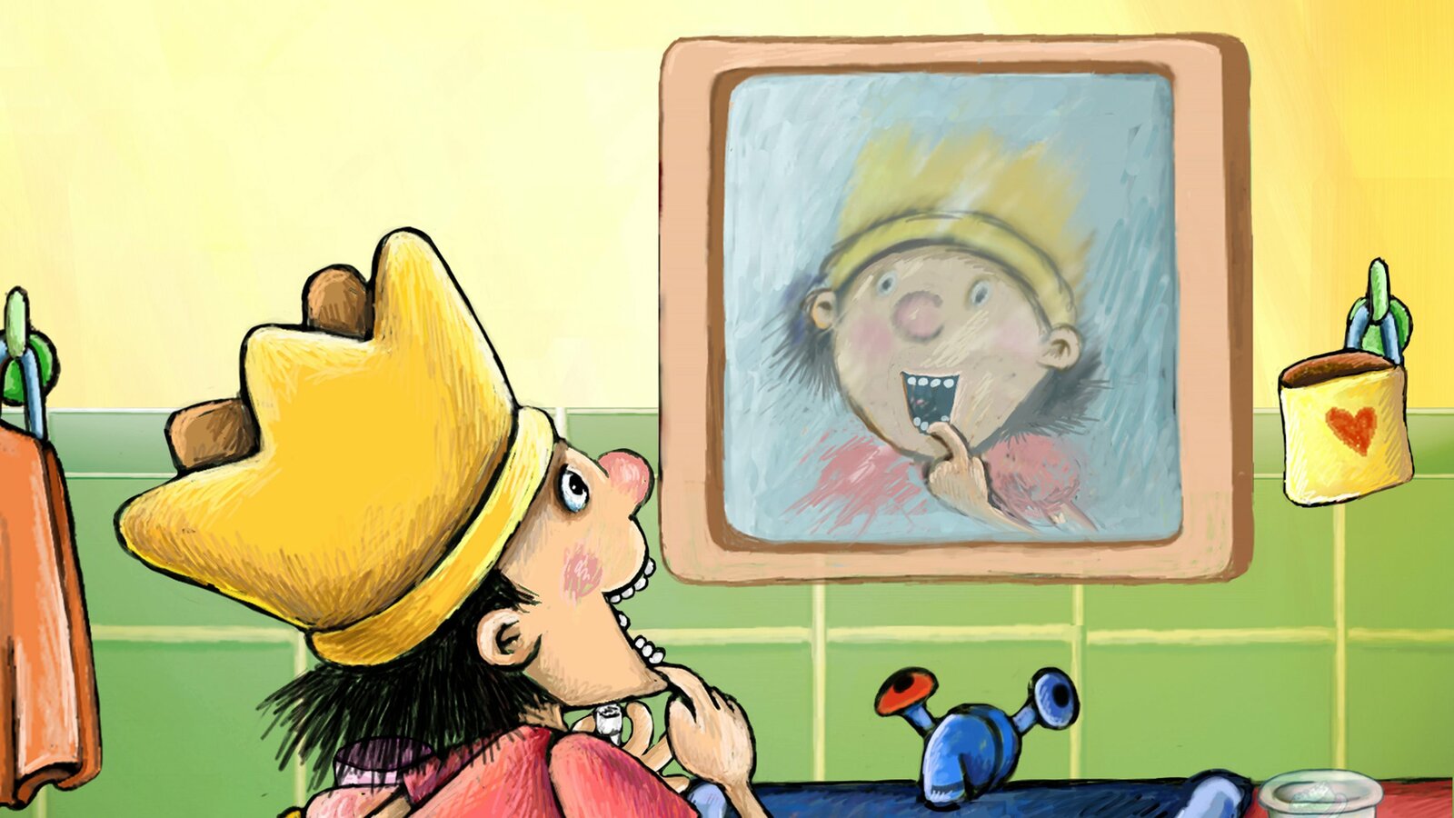 Der kleine König: "Die Zahnfee"Beim Zähne putzen fällt ein königlicher Milchzahn heraus, prompt gibt es eine Belohnung von der Zahnfee. Der kleine König möchte dieses schöne Spiel fortsetzen. Aber es wackelt nichts. Woher könnte er noch Zähne bekommen?Bild: © rbb/Imediat GbR
