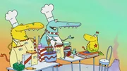Die Musifanten: "In einer kleinen Konditorei"Der tollpatschigen Kellner-Pinguin bringt den beiden die leckersten Torten an den Tisch.Bild: © rbb/ahoifilm